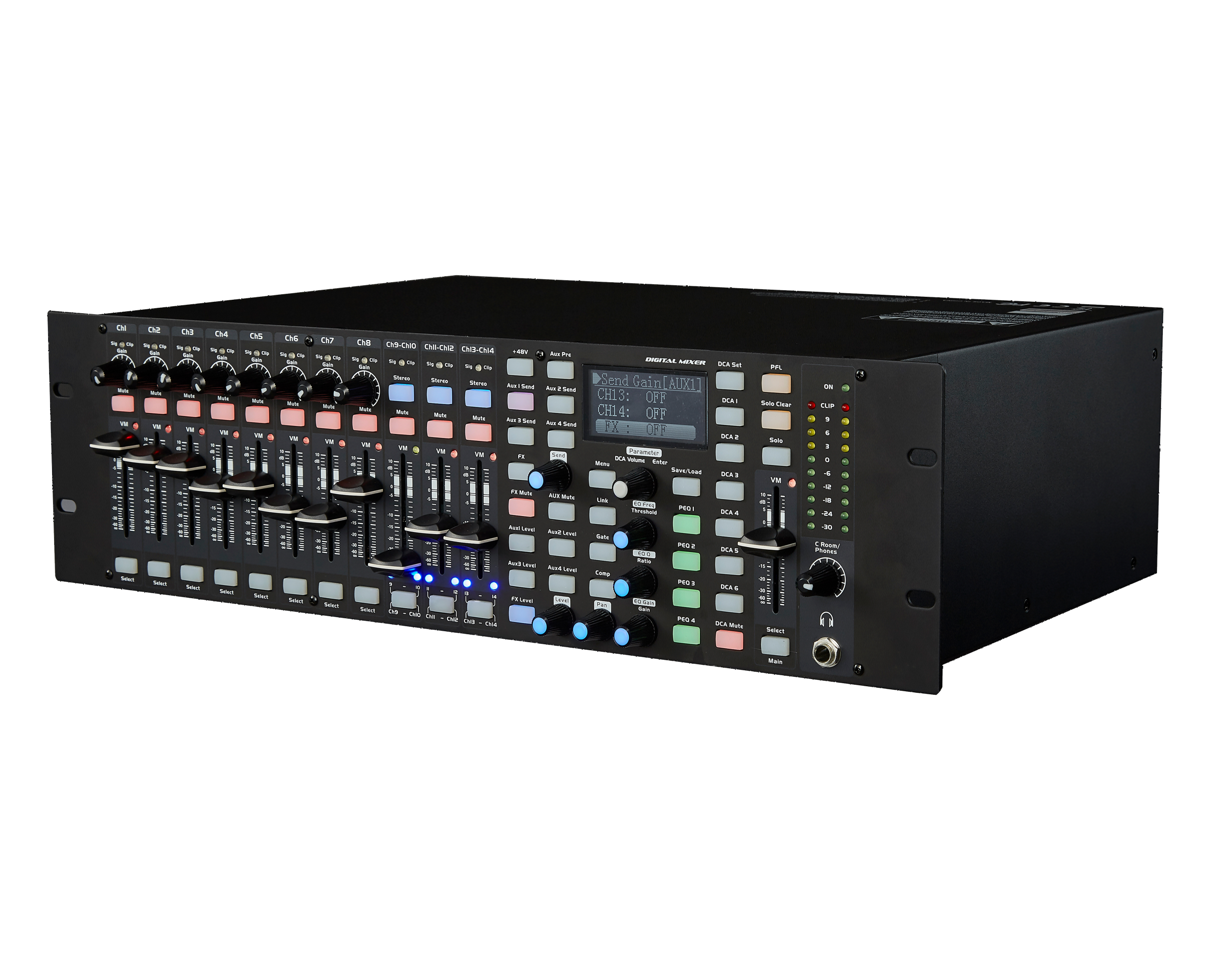 阈值范围:-30dBu~+20dBu; 抑制时间:10ms~150ms; 释放时间:10ms~1s; 比率:1:1~10:1